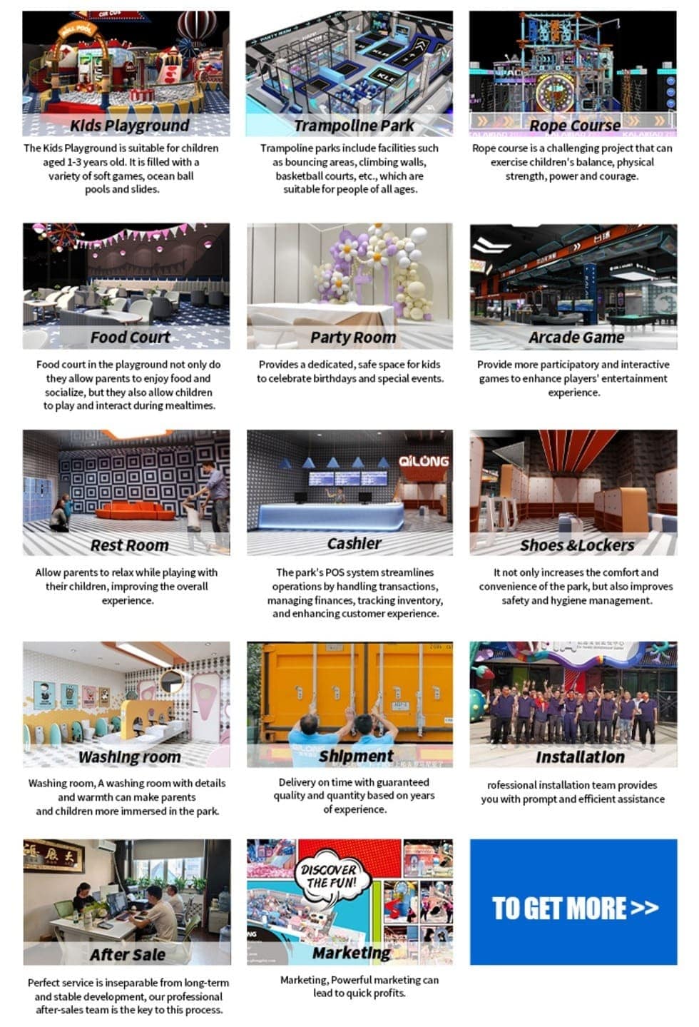 Qilong indoor amusement park provides children with a safe and comfortable indoor environment, allowing parents to watch their children explore and learn freely here with peace of mind. This design concept fully considers the growth needs of children, while also providing convenience for parents, ensuring that children can enjoy the fun of games and learn new skills through play.
